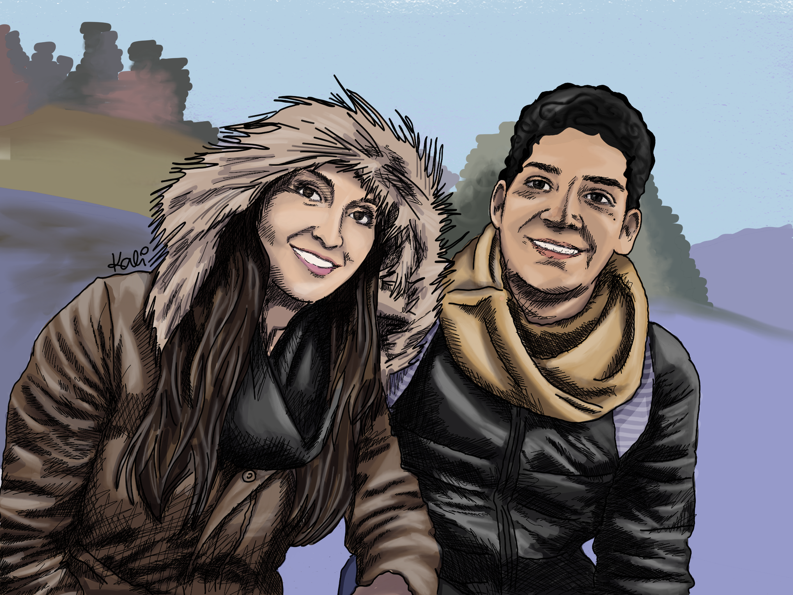- Los personajes serán dibujados EXACTAMENTE como salen en la foto, en la misma postura y con la misma ropa.